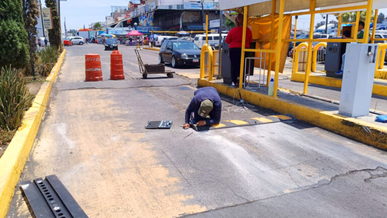 En la salida por Eje 6, la Administración de La Nueva Viga instaló topes para mejorar la convivencia entre peatones y conductores, así como reducir la velocidad de vehículos que salen por esta vía.